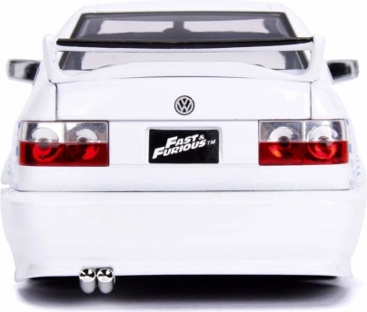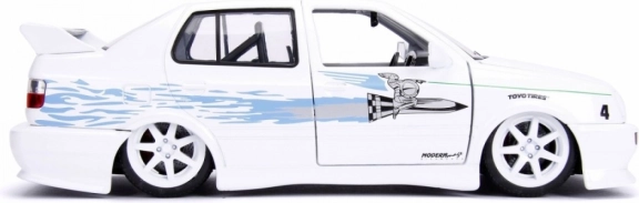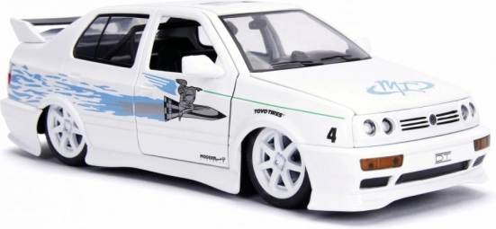 Erleben Sie Nervenkitzel und Stil der Filmrennen mit diesem Modellauto 1995 Volkswagen Jetta. Dieses Modell repräsentiert das ikonische Fahrzeug aus der beliebten Reihe Fast & Furious und zeichnet sich durch detaillierte Elemente und sportliches Design aus. Mit weißer Karosserie und blauen Flammen an den Seiten wurde jedes Detail dieses Modells sorgfältig gefertigt, um maximale Authentizität zu bieten. Als Sammlerstück ist es ideal zur Präsentation im Regal oder als Teil einer größeren Sammlung von Automodellen.