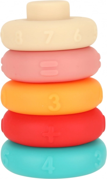 Auf den Ringen sind Zahlen und mathematische Symbole eingeprägt, sodass Kinder spielerisch Farben, Zahlen und erstes Rechnen verinnerlichen.
