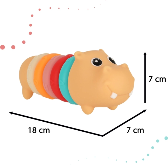 Das niedliche Silikon-Nilpferd mit Stapelringen ist ein cleveres 2-in-1-Spielzeug für die Kleinsten. Es fördert die Feinmotorik, das Farbverständnis sowie das Lernen von Zahlen und einfachen Rechenaufgaben. Die Teile können außerdem als weiches Beißspielzeug beim Zahnen verwendet werden.