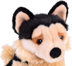 Dieser sitzende Plüsch-Schäferhund aus der eco-friendly Reihe wurde mit Liebe zum Detail gestaltet. Realistische Proportionen, ausdrucksvolle Augen sowie die Kombination aus beigem und schwarzem Fell machen ihn zum tollen Freund für kleine Tierliebhaber. Die weiche Oberfläche ist angenehm zu berühren und lädt zum Kuscheln ein.