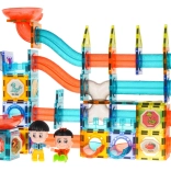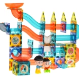 Entdecken Sie die Welt der Kreativität mit diesem farbenfrohen Set mit 128 magnetischen Teilen. Dieses Konstruktionsset ermöglicht es, eine Kugelbahn in beliebiger Anordnung zu bauen. Die Teile bestehen aus hochwertigem Material, sind glatt und sorgfältig verarbeitet. Dank der eingebauten Magnete lassen sie sich leicht verbinden und sorgen für eine stabile Konstruktion. Im Lieferumfang ist eine bebilderte Anleitung zum Aufbau von Beispielbahnen enthalten.