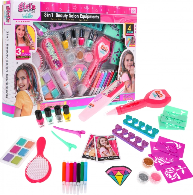 Schönheitscreator 3-in-1 für Mädchen – Bunte Haare, Maniküre, Tätowierung