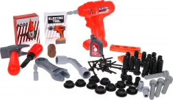 Der Bohrschrauber gibt beim Ein- und Ausdrehen realistische Geräusche von sich und verfügt über zwei austauschbare Aufsätze für noch mehr Spielspaß.