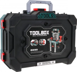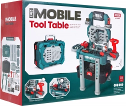 Enthalten sind 78 Teile, darunter Säge, Hammer, Schraubendreher, Schlüssel, Schrauben und „Holz“-Bretter. Nach dem Spielen lässt sich alles einfach im großen Koffer mit Griff verstauen. Ideal zur Förderung von Feinmotorik, Kreativität und Rollenspiel.
