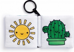 Illustrationen von Mochi Kids zeigen verspielte Motive wie Regenbogen, Sonne und Kaktus, die Kinder gern betrachten und benennen – so wird die Sprachentwicklung und die ersten Wörter sanft unterstützt. Das Produkt erfüllt Sicherheitsstandards und ist bereits ab der Geburt geeignet.