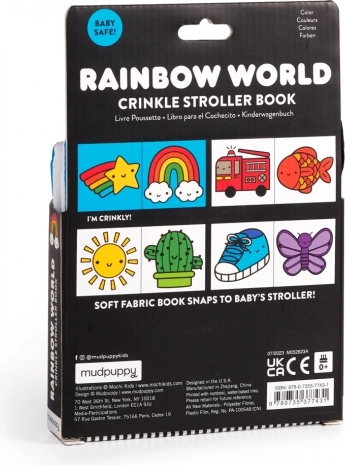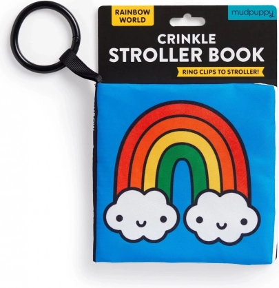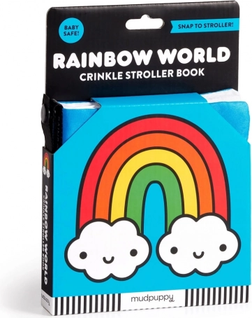 Das weiche Stoffbuch für den Kinderwagen mit dem Motiv Regenbogenwelt von MUDPUPPY begeistert Babys ab der Geburt. Dank des praktischen Rings lässt es sich leicht am Kinderwagen oder Autositz befestigen. Bunte Illustrationen von Mochi Kids, knisternde Seiten und angenehme Texturen fördern sensorische Wahrnehmung, Hand-Auge-Koordination und frühe Sprachentwicklung – ideal für unterwegs.