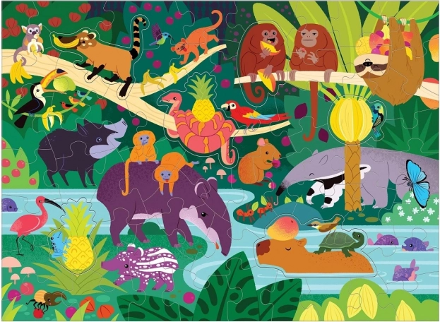 Die lebendige Dschungelwelt mit Tieren und tropischen Früchten fördert Aufmerksamkeit und Vorstellungskraft. Ideal zum gemeinsamen Puzzeln und spielerischen Lernen.
