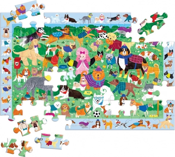 Das Mudpuppy Puzzle Legen und Suchen: Hundetag bietet eine clevere Kombination aus Puzzeln und Suchspiel, die Beobachtungsgabe, Geduld und Feinmotorik fördert. Nach dem Zusammensetzen der hundevollen Szene können Kinder mehr als 40 versteckte Figuren im Rahmen rund um das Bild suchen – die ideale Unterhaltung für Kinder ab 4 Jahren.