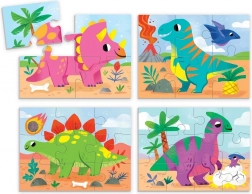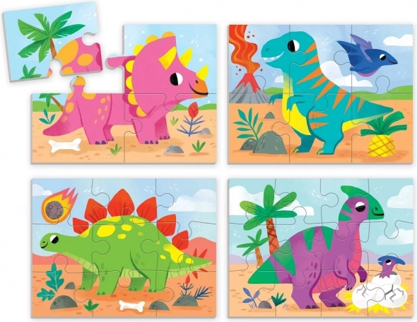 Das Mudpuppy-Set Dinosaurier 4-in-1 enthält vier unterschiedliche Puzzles mit fröhlichen Dinosaurier-Illustrationen von Kathryn Selbert. Jedes Puzzle hat einen anderen Schwierigkeitsgrad (4, 6, 9 und 12 Teile) und ist somit ideal für die schrittweise Förderung der Feinmotorik, Geduld und des logischen Denkens von Kindern ab 2 Jahren.