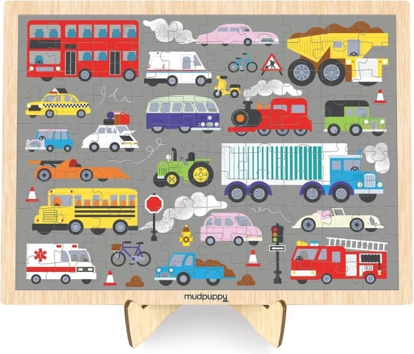 Mudpuppy Holzpuzzle Fahrzeuge mit Ständer 100 Teile