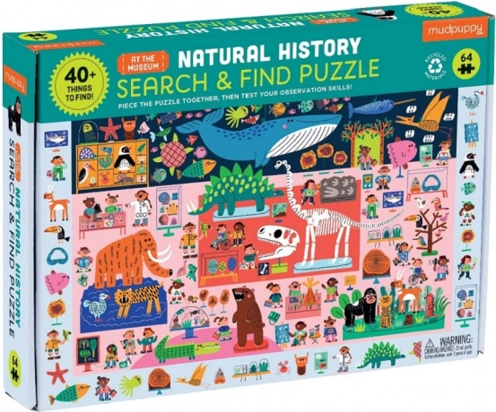Tauchen Sie ein in die Welt der Entdeckungen mit der Edition Legen & Suchen – das Thema ist „Naturkundemuseum“, wo prähistorische und heutige Tiere aufeinandertreffen. Nach dem Fertigstellen des Bildes können Kinder Aufmerksamkeit und Geduld trainieren, indem sie mehr als 40 versteckte Objekte entlang der Ränder der Szene aufspüren. Dank hochwertigem Druck und matter Oberfläche sind die Farben kräftig und die Details wunderbar klar.