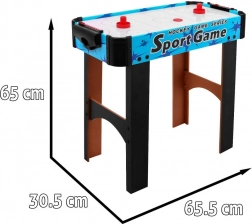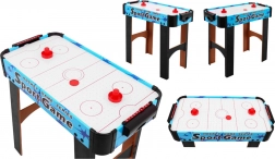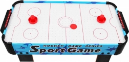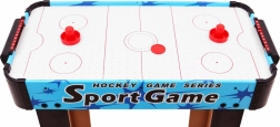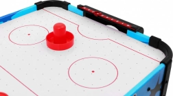 Genießen Sie dynamischen Spaß mit dem kompakten Tisch-Airhockey. Die Spielfläche mit Öffnungen und Luftstrom erzeugt ein Kissen, auf dem der Puck reibungslos ohne Widerstand gleitet. Zwei Spieler stehen sich gegenüber und versuchen mithilfe der Schläger ("Grzybki") den Puck ins gegnerische Tor zu schießen.