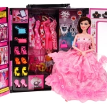 Kleiderschrank mit Puppe ist ein erstaunliches, großes und buntes Set, das der Traum eines jeden kleinen Mädchens ist. Dieses Set enthält 30 Elemente und verfügt über einen Griff für einfaches Tragen, damit Ihr Kind es überallhin mitnehmen kann.