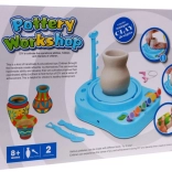 | Das Set für kleine Töpfer ist ein Lernspielzeug zur Herstellung und Bemalung von Keramikgefäßen. Kinder können eigene Töpfe, Becher oder Krüge herstellen und sie anschließend nach ihren Vorstellungen bemalen. Die Töpferscheibe dreht sich in zwei Geschwindigkeiten, langsamer und schneller. Das Spielzeug regt die Fantasie an und fördert Geschicklichkeit, manuelle und künstlerische Fähigkeiten. Das Spielzeug ist für Kinder ab 8 Jahren geeignet und hat ein CE-Zertifikat. Das Spielzeug wird mit 3 x R14 Batterien betrieben (nicht im Lieferumfang enthalten). | |