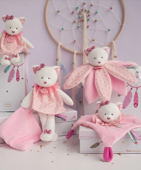 Dieses schöne Plüsch-Schmusetier bietet nicht nur Weichheit und Trost, sondern entwickelt auch die Sinne und Neugier der Kinder. Sein Design kombiniert trendige Farben und sanfte Materialien, was dieses Set für kleine als auch größere Kinder attraktiv macht.
