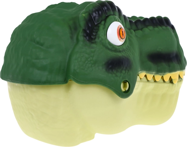 Der große Dinosaurierkopf dient als robustes Aufbewahrungssystem mit leicht zu öffnendem Verschluss und Griff. Nach dem Spielen ist alles schnell verstaut und kann bequem mitgenommen werden.