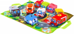 Entdecken Sie Spielspaß für die Kleinsten: ein Set aus 9 weichen Stoffautos und einer bunten Spielmatte mit Straßen und Stadt. Die Autos sind sicher, angenehm zu berühren und bieten verschiedene Geräuscheffekte – Rascheln, Klingeln und Quietschen. Die Matte lässt sich dank praktischer Klettverschlüsse leicht in eine Tragetasche verwandeln. Das gesamte Set ist bei niedriger Temperatur maschinenwaschbar, sodass es stets sauber und spielbereit ist.