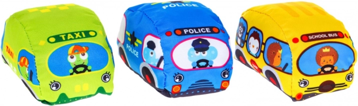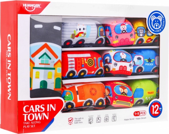Bunte Stoffautos mit niedlichen Fahrern sind leicht, weich und ideal für kleine Händchen. Sie fördern ein spielerisches und sicheres Spielen ohne harte Kanten.