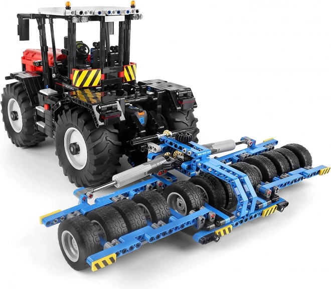 Bauen Sie ein realistisches, voll funktionsfähiges Traktormodell aus einem Bausatz mit 2716 Teilen, das Sie mit RC-Fernsteuerung oder App auf dem Smartphone bedienen. Enthalten sind austauschbare Anbaugeräte (Egge, Häcksler, Presse, Walze), große Gummireifen für stabile Fahrt und viele bewegliche Elemente inklusive Motorhaube und Pressarme. Ideal für Teenager und Technikfans ab 14 Jahren.