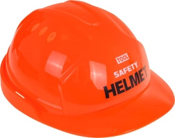 Der orangefarbene Sicherheitshelm vervollständigt die Rolle des kleinen Bauarbeiters und vermittelt grundlegende Sicherheitsregeln beim Umgang mit Werkzeug.