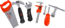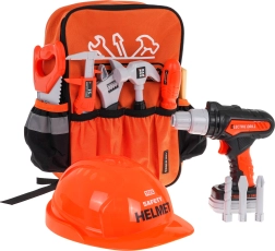 Der Rucksack besteht aus robustem Textil, verfügt über ein Hauptfach mit Reißverschluss, Seiten- und Fronttaschen sowie verstellbare Träger für bequemes Tragen. Im Set fehlen weder Säge, Hammer, Schraubendreher mit Bits, Schlüssel, Schrauben mit Muttern noch Montageplatten – alles in kindgerechter, leichter und langlebiger Ausführung.