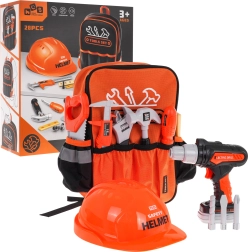 Dieses kreative Tüftler-Set im orangefarbenen Rucksack bietet Kindern ein realitätsnahes Erlebnis beim Arbeiten mit Werkzeug – sicher und unterhaltsam. Dank der Akku-Bohrmaschine mit 2× AA-Batterien (nicht enthalten) und austauschbaren Aufsätzen probieren kleine Baumeister Schrauben, Bohren und Montieren. Der Schutzhelm verstärkt die Rolle des kleinen Meisters und vermittelt grundlegende Sicherheitsprinzipien.