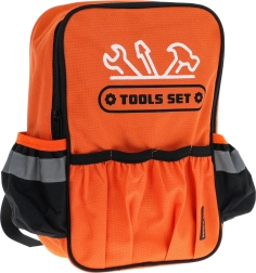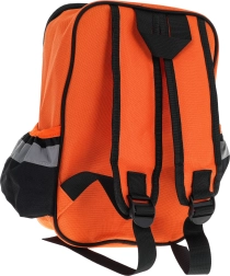 Leichter Textilrucksack mit Hauptfach mit Reißverschluss, Außentaschen und reflektierenden Elementen hält das Werkzeug übersichtlich und sicher an einem Ort.