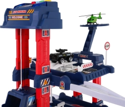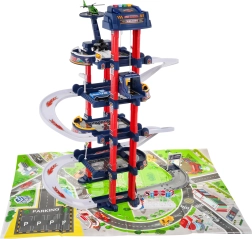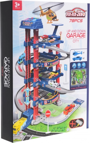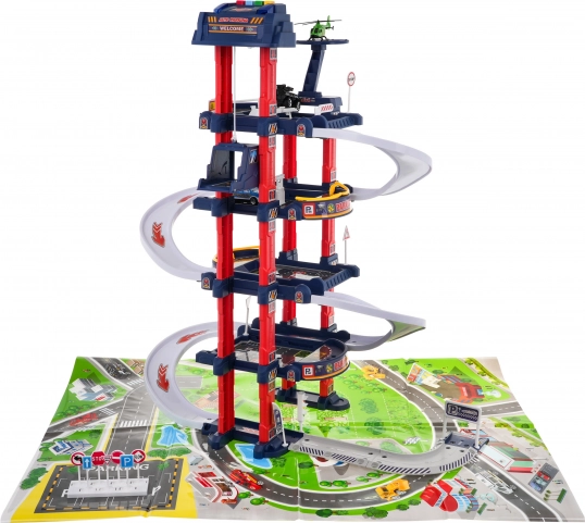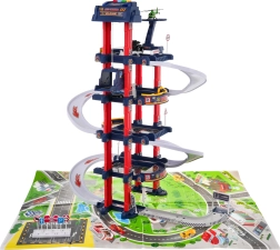 Das mehrstöckige Parkhaus bietet Parkplätze, eine Tankstelle, einen Lift für Autos und einen Heliport. Das Bedienfeld mit farbigen Tasten steuert den Aufzug und startet Effekte: Die rote Taste fährt den Aufzug nach unten, die gelbe hebt ihn nach oben. Die blaue Taste spielt Geräusche von Polizei, Feuerwehr, Krankenwagen, Motorstart und Schüssen ab, die grüne Taste aktiviert die Hupe. Auf dem Panel blinken blaue und rote Lichter, die die Spielatmosphäre verstärken.