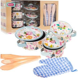 Kinderset aus Aluminium-Töpfen mit Küchenzubehör