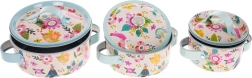Das Set enthält drei Aluminiumtöpfe mit Deckeln, perfekt geeignet für verschiedene Kochrollenspiele.