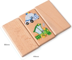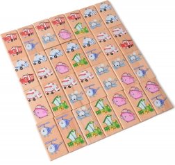 XXL Holzdomino mit Verkehrsfahrzeugmotiven enthält 28 Teile, die Feuerwehr, Krankenwagen, Polizeiautos und mehr darstellen. Ideal für die Entwicklung von Kindern dank fröhlich illustrierter Motive.