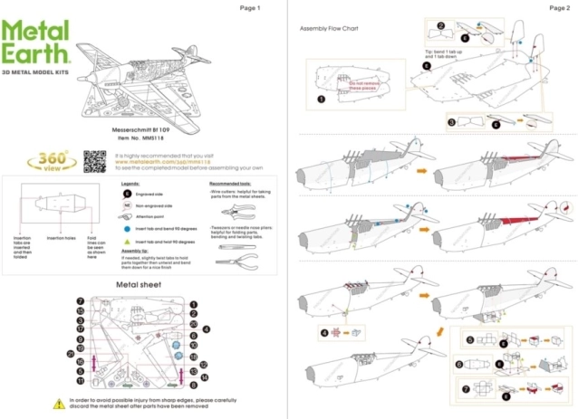 Lieferumfang: Das Set beinhaltet 1 Stahlfolie mit Teilen und eine ausführliche Montageanleitung. Das Werkzeug ist nicht enthalten und muss separat beschafft werden.