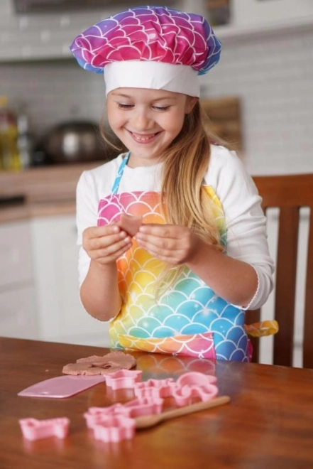 Alles Nötige in einem Set: Schürze, Kochmütze, Ofenhandschuh, Ausstechformen, Messbecher, Teigroller, Kochlöffel und Schneebesen. Kinder haben alles griffbereit und können sich ganz auf die Freude am Backen konzentrieren.