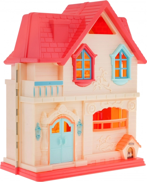 Diese farbenfrohe, aufklappbare Villa bietet Kindern ab 3 Jahren endlose Spielmöglichkeiten. Nach dem Öffnen erhalten Sie Zugang zu vier detailreich ausgestatteten Zimmern mit Möbeln und Accessoires. Die Klingel an der Eingangstür spielt beim Drücken das Läuten und Hundegebell ab und schaltet gleichzeitig die Lampen an der Tür ein; zusätzlich blinkt eine Stehlampe im Zimmer.