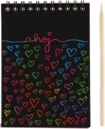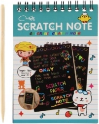 Das bunte Kratznotizbuch ermöglicht Kindern, ihre Kreativität mit einem Kratzstift zu entfalten und farbenfrohe Bilder zu erstellen.