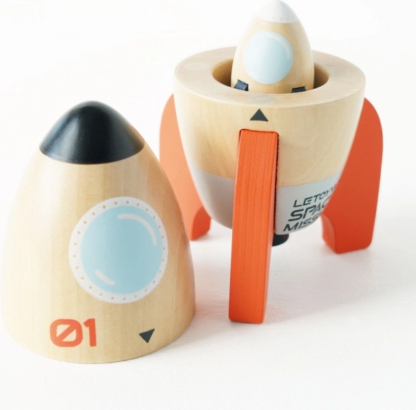 Das Set aus Weltraumraketen von Le Toy Van ist das ideale Geschenk für kleine Entdecker. Dieses Holzset enthält zwei Raketen - eine größere mit einem öffnenden magnetischen Deckel und einer kleineren Rakete darin. Alle Komponenten sind aus FSC-zertifiziertem Holz gefertigt und mit ungiftigen, wasserbasierten Farben bemalt, was sie für Kinder sicher macht.