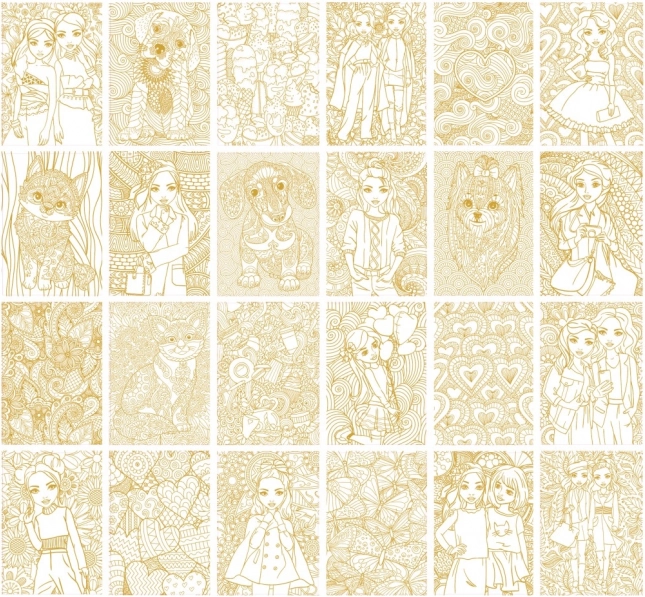 Entdecken Sie die Freude am Ausmalen mit unserem Malset Luxury Besties A4, das 24 wunderschöne Bilder zum Dekorieren bietet.