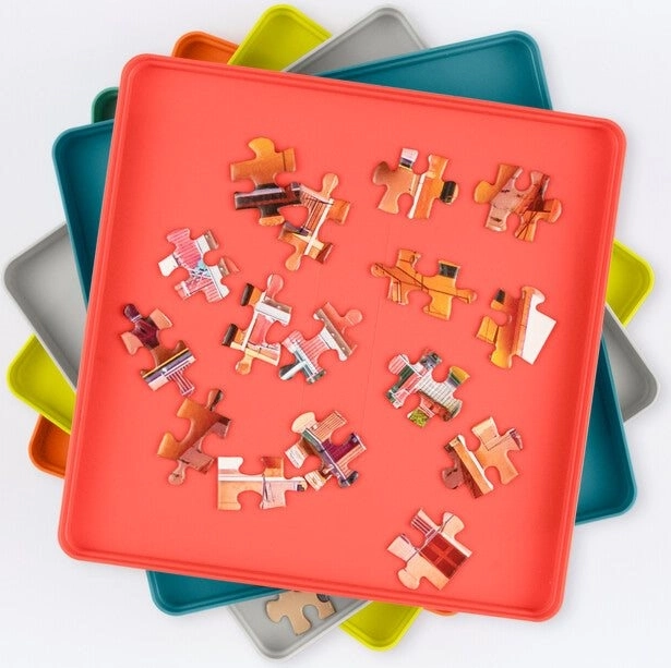 Genießen Sie das Puzzeln mit perfekt organisiertem Arbeitsplatz. Sechs farbige Schalen ermöglichen das schnelle Sortieren der Teile, sei es nach Form, Farbe oder Kanten. Die Schalen lassen sich leicht stapeln, mit einem oberen Deckel abdecken und samt Teilen sicher verstauen – nichts fällt heraus und Sie sparen Platz.