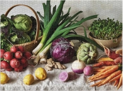 Entdecken Sie die Schönheit lokaler Produkte mit dem Motiv Greenmarket Table. Dieses großformatige Puzzle begeistert Liebhaber hochwertiger Puzzles und Designs: Es bietet 1500 präzise gestanzte Teile, erstklassigen Druck und eine matte Oberfläche für maximale Detaillesbarkeit ohne Spiegelungen. Inklusive Vorlagenbild und Verpackung in einer außergewöhnlich stabilen Schachtel, die sich ideal zur wiederholten Aufbewahrung eignet.