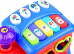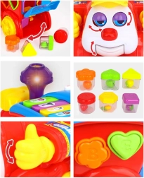 Die Lokomotive ist zudem mit einem pädagogischen Modus ausgestattet, der durch ABC-Tasten und Klaviertasten Kinder mit Tieren, Farben, Zahlen und Musiknoten vertraut macht. Robuste Enden des Spielzeugs sorgen für eine sichere und einfache Aufbewahrung der bunten Blöcke innerhalb des Zuges.
