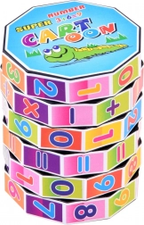 Buntes Lernspielzeug in Zylinderform mit drehbaren Ringen hilft Kindern, Addition, Subtraktion, Multiplikation und Division zu üben. Das kompakte und unterhaltsame Hilfsmittel fördert logisches Denken, Feinmotorik und unterstützt das Lernen durch Spiel.