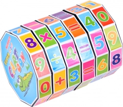 Dieser Mathematikzylinder ist ein hervorragendes Hilfsmittel für Kinder, die Zahlen und grundlegende Rechenarten lernen. Drehsegmente mit Zahlen und Symbolen erlauben das Zusammensetzen und Überprüfen einfacher Aufgaben, sodass Kinder den Stoff leicht und spielerisch festigen.