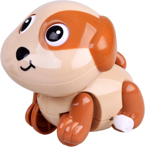 Dieses fröhliche Kunststoff-Hündchen ist ein großartiger Begleiter für die ersten Entdeckungen der Welt. Nach dem Aufziehen fährt es über den Boden, wedelt fröhlich mit dem Schwanz und blinzelt mit den Augen – all das motiviert Kinder zum Krabbeln und aktiven Spielen.