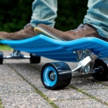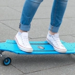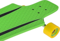 Das Deck aus hochstrapazierfähigem Polypropylen ist leicht und stabil, die rutschhemmende Textur und Griptapes geben Sicherheit während der Fahrt. Aluminium-Trucks 7", große PU-Rollen 70 × 51 mm und ABEC-7-Lager sorgen für gleichmäßiges Abrollen, gute Dämpfung von Unebenheiten und präzises Kurvenfahren.