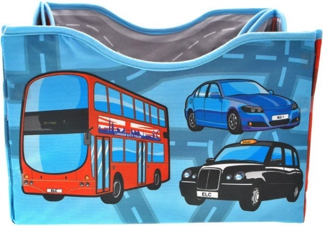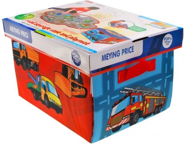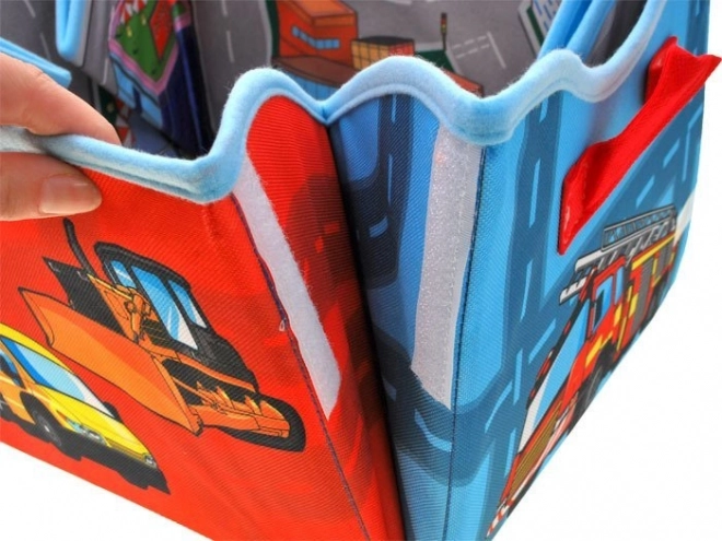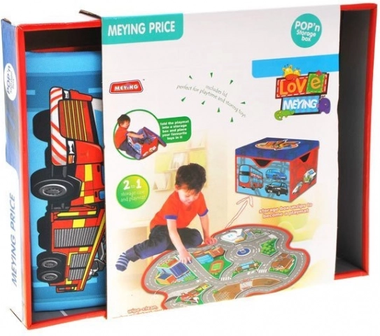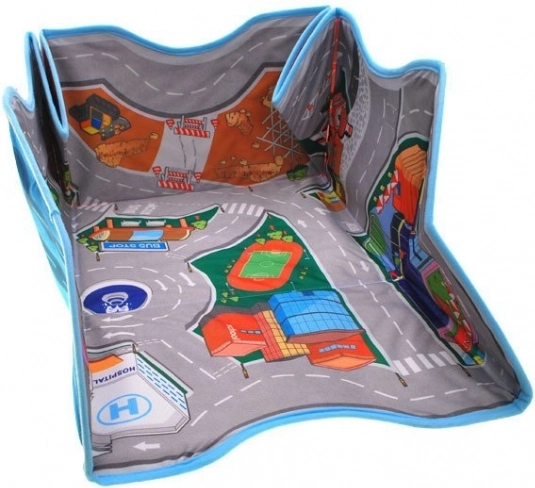 Die clevere Lösung fürs Kinderzimmer: Ausgebreitet entsteht eine großzügige Spielmatte mit Stadtmotiv, zusammengefaltet eine stabile Box für die Autosammlung und weiteres kleines Spielzeug. Das beidseitige Textilmaterial fühlt sich angenehm an, und die verstärkten Wände behalten ihre Form.