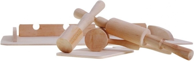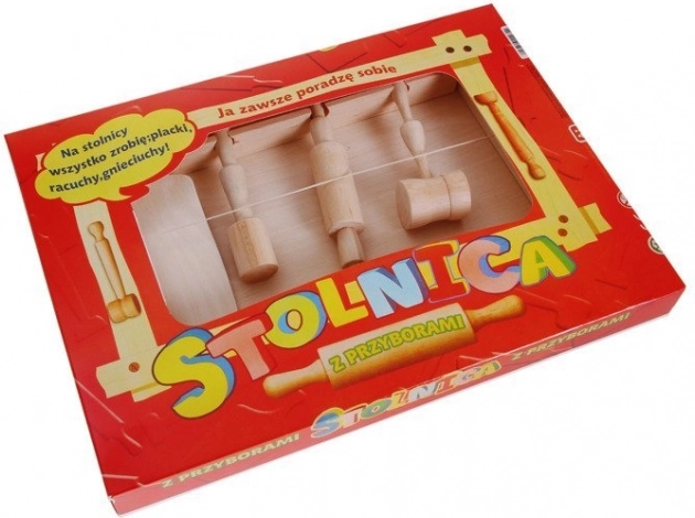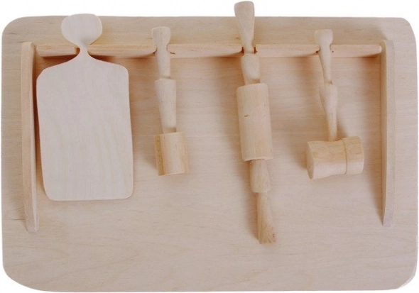 Teigunterlage, Schneidebrett, Nudelholz, Stößel und Fleischklopfer – die ideale Ausstattung für die ersten Koch- und Backversuche mit Eltern oder Großeltern.