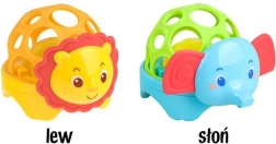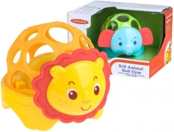 Dieses leichte und sichere Spielzeug in Form eines niedlichen Safari-Tieres hat eine flexible, durchbrochene Konstruktion mit großen Öffnungen, die das Greifen mit kleinen Händchen erleichtern. Im Inneren befindet sich eine Kugel, die sich bei Bewegung beleuchtet und fröhliche Geräusche erzeugt. Weiche Ohren oder die Mähne laden zum Berühren und Kauen ein und fördern die sensorische Wahrnehmung.