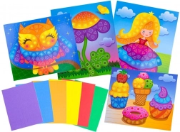 Das Verzieren des Bildes ist einfach, es werden keine scharfen Werkzeuge benötigt. Die Schaumstoffaufkleber lassen sich leicht aus der Schablone herausbrechen und gemäß Ihrer Vorstellungen aufkleben. Mit diesem kreativen Spielzeug können Kinder persönliche Geschenke für Eltern und Großeltern gestalten.