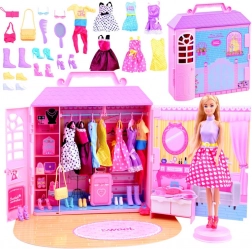 Dieses detailliert gestaltete Set kombiniert die ANLILY-Puppe mit einem zauberhaften tragbaren Kleiderschrank in Form eines rosa Häuschens. Kinder können Kleider auf Bügel hängen, Schuhe und Accessoires in Schubladen verstauen und den Schrank mit den beiliegenden Aufklebern verzieren. Eine hervorragende Wahl zur Förderung von Kreativität, Feinmotorik und Rollenspiel.