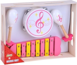 Dieses mehrteilige Musikset ist die perfekte Wahl für kleine Musiker und die ganze Freundesgruppe. Die Instrumente sind aus hochwertigem Holz gefertigt, haben einen angenehmen Klang und ein ansprechendes Design in Rosa- und Gelbtönen. Kinder entwickeln spielerisch Rhythmus, Koordination und musikalisches Feingefühl.